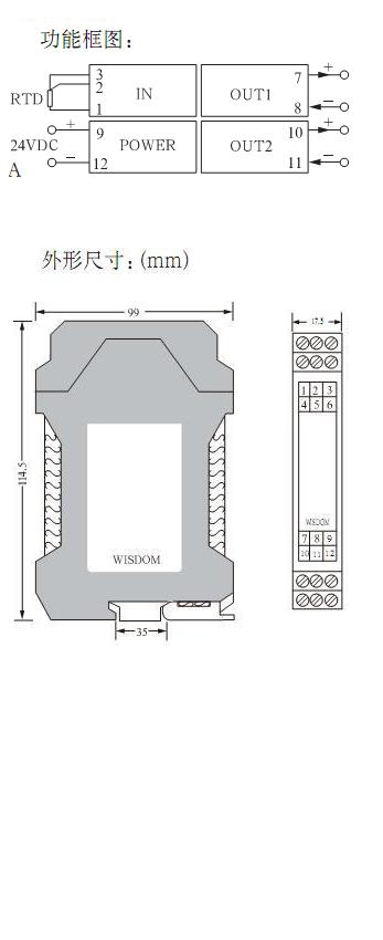 可直接与Pt热电阻传感器接口;内含线性化和长线补偿功能;三端口隔离、输出二路相互隔离;DIN TS32、TS35型导轨方装。